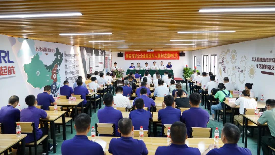 7月31日,瑞安市非公企業(yè)退役軍人服務(wù)站授牌儀式在瑞立集團(tuán)舉行。溫州市退役軍人事務(wù)局黨組書(shū)記、局長(zhǎng)阮云富,瑞安市副市長(zhǎng)林增豐為華峰集團(tuán)、瑞立集團(tuán)、通力集團(tuán)等14家非公企業(yè)退役軍人服務(wù)站集中授牌。瑞安市退役軍人事務(wù)局局長(zhǎng)徐軍凱主持授牌儀式。瑞安市退役軍人服務(wù)中心主任賈起,瑞立集團(tuán)董事長(zhǎng)張曉平、執(zhí)行總經(jīng)理余錦瑞、黨委書(shū)記陳康進(jìn),23個(gè)鄉(xiāng)鎮(zhèn)服務(wù)站站長(zhǎng),14家企業(yè)單位代表及退役軍人代表等70多人出席。