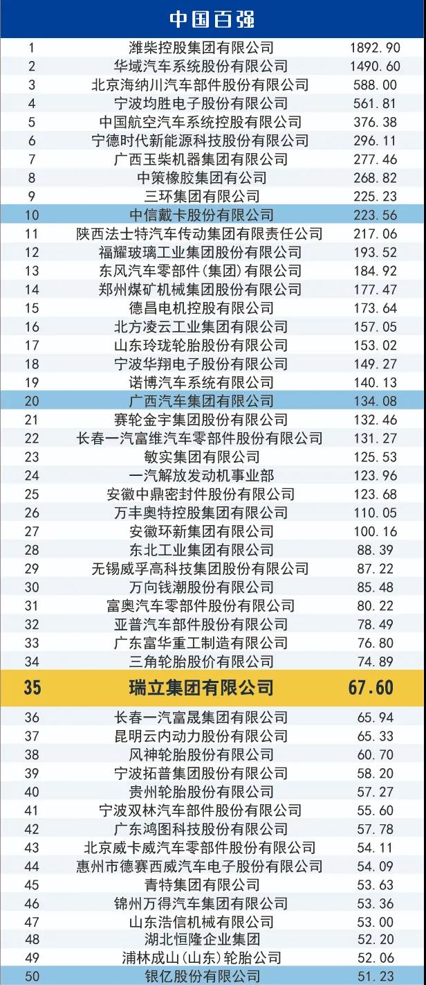 瑞立對標(biāo)汽車零部件行業(yè)“雙百強”上榜企業(yè),通過自主創(chuàng)新,打造產(chǎn)業(yè)鏈、培育新動能,持續(xù)發(fā)力建設(shè)品牌。