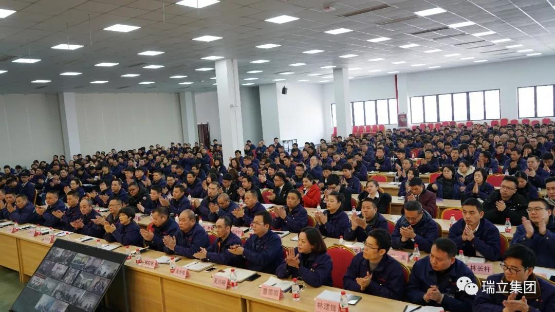 一元復(fù)始,萬象更新。為對2019年度的工作及時(shí)進(jìn)行總結(jié),新年伊始馬上部署2020年度的生產(chǎn)經(jīng)營工作,2020年1月1日上午,瑞立集團(tuán)召開了2020年度經(jīng)營工作大會。集團(tuán)總部部長助理級及以上干部,下屬各子公司、板塊管理團(tuán)隊(duì),駐外銷售等各部門各級干部共2000余人參會(瑞安總部1000余人現(xiàn)場參會,全國各地1000余名干部視頻連線參會)。會議由集團(tuán)執(zhí)行總經(jīng)理余錦瑞主持。