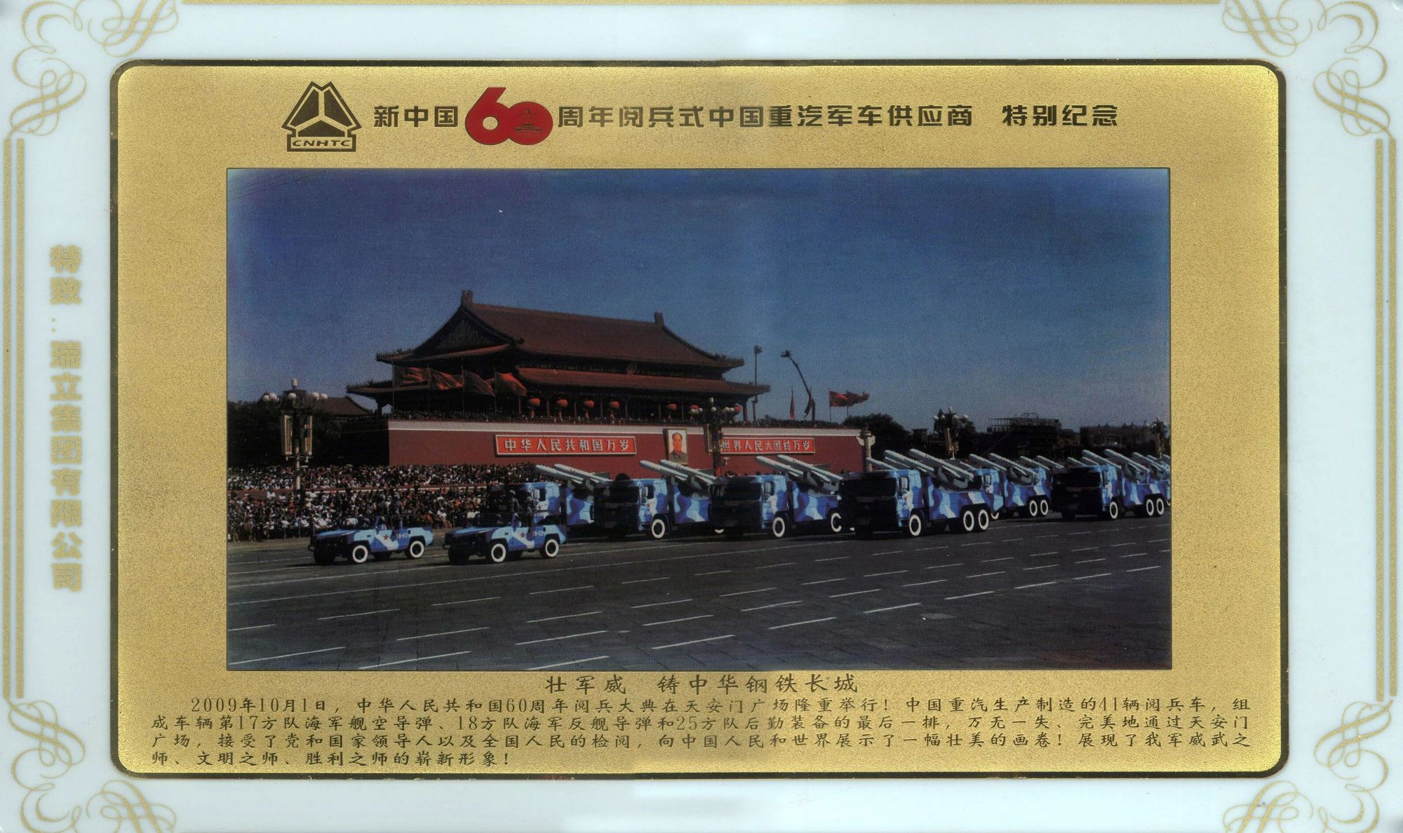 9月3日上午,紀(jì)念中國人民抗日戰(zhàn)爭暨世界反法西斯戰(zhàn)爭勝利80周年閱兵活動(dòng)在北京天安門廣場隆重舉行,一大批國產(chǎn)現(xiàn)役主戰(zhàn)裝備與世人見面。瑞立集團(tuán)及旗下子公司作為軍品指定供方,自主研發(fā)的制動(dòng)系統(tǒng)、電子電控、轉(zhuǎn)向系統(tǒng)、離合系統(tǒng)、新能源、汽車電器及智能網(wǎng)聯(lián)系列產(chǎn)品配套一汽、東風(fēng)、重汽、陜汽、北奔、一機(jī)、三江、泰安航天、重慶鐵馬等各主機(jī)廠的閱兵軍車,亮相在戰(zhàn)旗方隊(duì);陸上作戰(zhàn)群的遠(yuǎn)程火炮方隊(duì);海上作戰(zhàn)群的艦載防空武器方隊(duì)、反艦導(dǎo)彈方隊(duì)、水下兵器方隊(duì);防空反導(dǎo)群的預(yù)警探測方隊(duì)、對空抗擊方隊(duì)、反無人機(jī)方隊(duì);信息作戰(zhàn)群的網(wǎng)絡(luò)空間作戰(zhàn)方隊(duì)、電子對抗方隊(duì)、信息支援方隊(duì);無人作戰(zhàn)群的陸上無人作戰(zhàn)方隊(duì)、海上無人作戰(zhàn)方隊(duì)、空中無人作戰(zhàn)方隊(duì);后裝保障群的后勤保障方隊(duì)、裝備保障方隊(duì);戰(zhàn)略打擊群的巡航導(dǎo)彈方隊(duì)、高超聲速導(dǎo)彈方隊(duì)、核導(dǎo)彈第一方隊(duì)、核導(dǎo)彈第二方隊(duì),接受祖國和人民的檢閱。